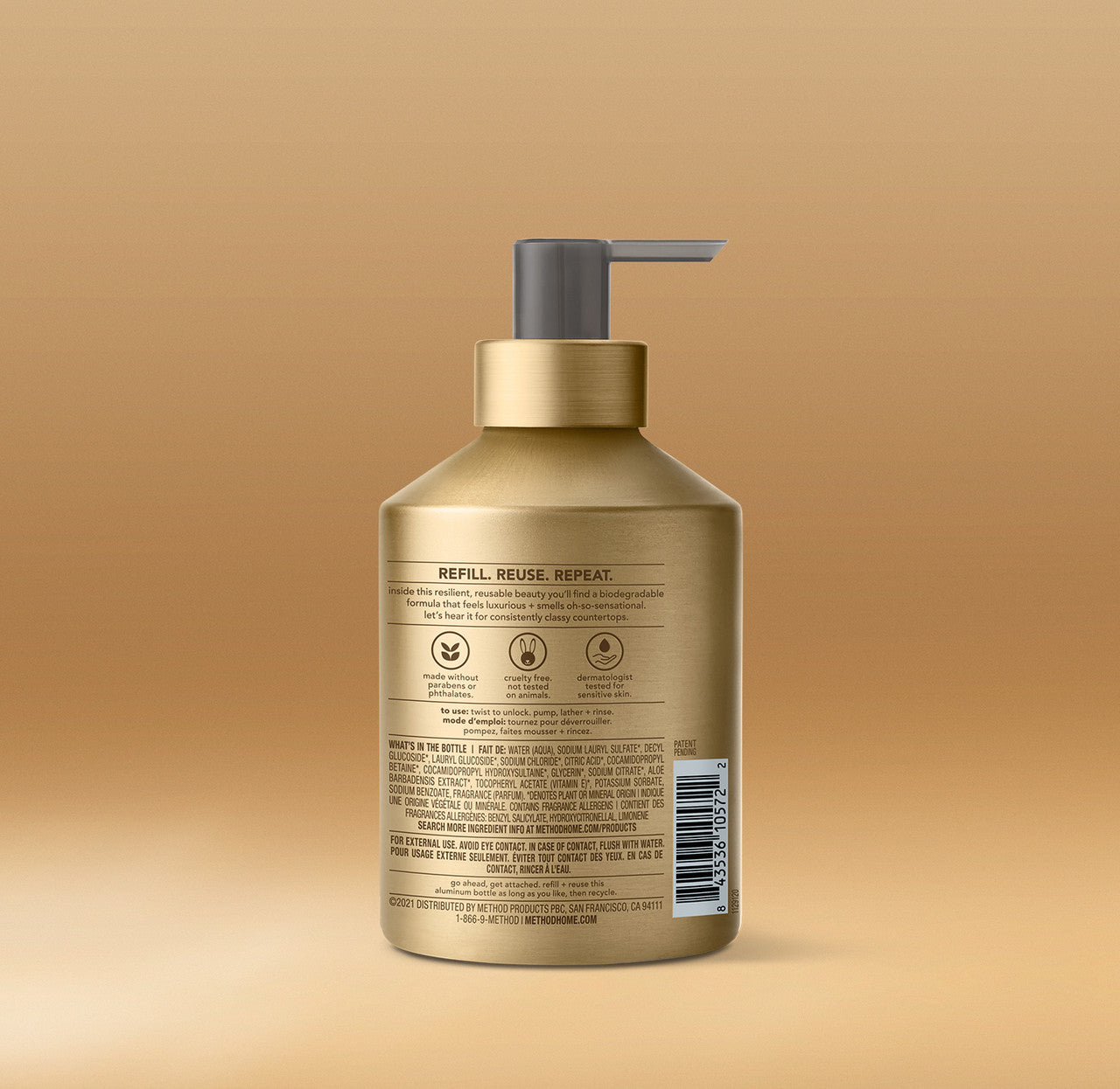 • Sleek. counter-worthy bottles designed to be refilled + flatter your fixtures for years.